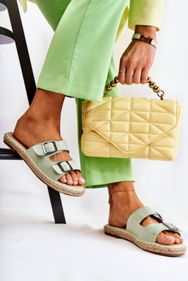 Krokodíl dámske kožené papuče s svetlo zelenými perry