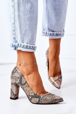 Kožené čerpadlá s hadím vzorom lewski topánky 2801 zloty