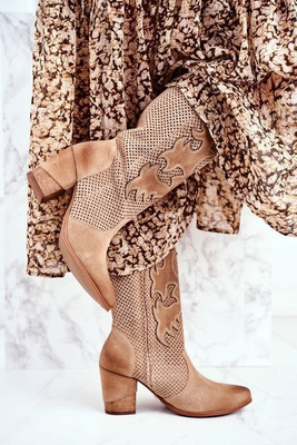 Dámske topánky na post kožené velor kovbojské topánky vynikajúce béžové 1170
