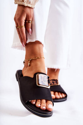 Pohodlné kožené dámske čierne a zlaté papuče Neyla
