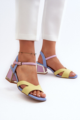 +1Dámske sandále na podpätku bloku s ozdobným remienkom z ekokože Zlaté Obivena
