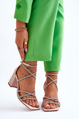 Dámske sandále na stabilnom stĺpiku béžovej lavissa