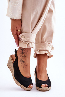 Dámske kožené sandále na klinoch čierna spravodlivosť