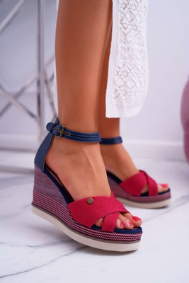 Dámske sandále na stĺpe Openwork Suede Red Hibaby
