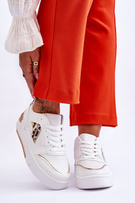 Dámske športové topánky na masívnej platforme biele a zlaté chante