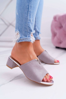 Sivé topánky sandále na stĺpiku objavili prsty šedú šedú farbu
