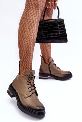 Kožené Členkové Topánky na Klíne D&A Béžové MR880-137