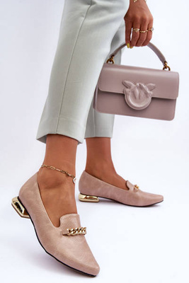 Dámske kožené mokasíny s plochým béžovým sincínom