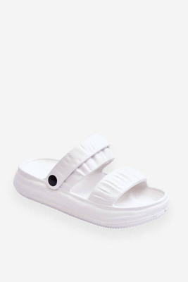 Módne dámske papuče na masívnej platforme Białe Lorette