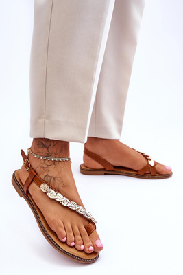 Kožené sandále so zlatou mrkvou kubické zirkóny