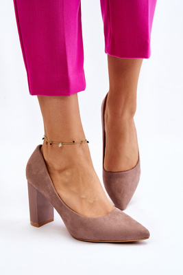 Dámske semišové topánky na masívnom stĺpovom svetlo hnedom valeris