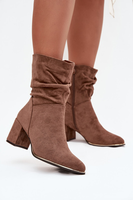 Dámske členkové topánky na opätku s riasením Teplé podšité Hnedé Amelise