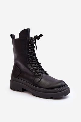 Dámske kožené topánky čipky -up topánky Zazoo K01 čierna