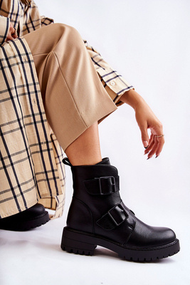 Čierne topánky na kožené lanelly s opaskom a cvočkami