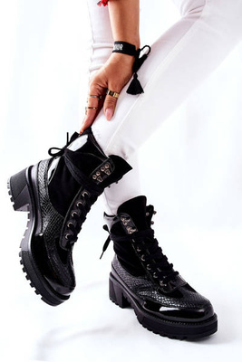 Dámske kožené kožené turistické topánky veľká hviezda II274446 čierna