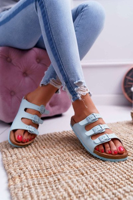 Dámske žabky s kvetmi hrubé modré podrážku amadeo