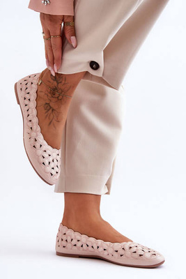 Dámske kožené baleríny v Spitz s dekoráciou béžová carlos