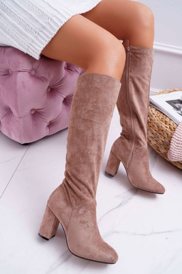 Dámske topánky na stĺpiku na kolená, Suede Beige Lemane