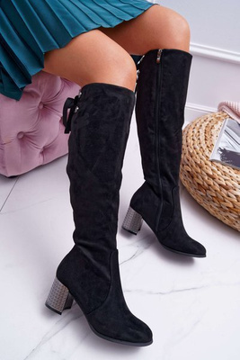 Dámske topánky na stĺpiku na kolenné semišové ťavu Bemma