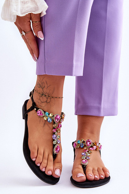 Dámske ploché sandále s dekoratívnym pásom čiernej bobúľ