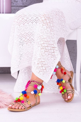 Lu Boo Farebné sandále pompoms rímsky gladiátor