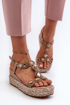 Dámske sandále na klinu s pletením béžové Esalena