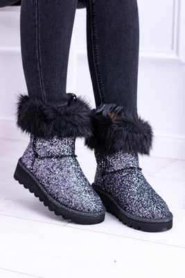 Dámske vysoké snehové topánky so štvorrúsnou kožušinou a trblietkami