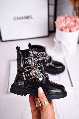 Lu Boo Black Detské členkové topánky so zirkónmi PU Littlecarrie