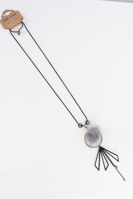 Dámsky náhrdelník s pompom dlhou šedou reťazou