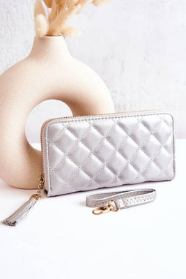 Veľká prešívaná peňaženka s lemovaným strieborným selley