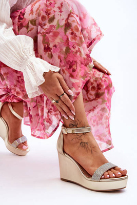 Dámske sandále na špendlíku so zlatými dokonalými kamienkami