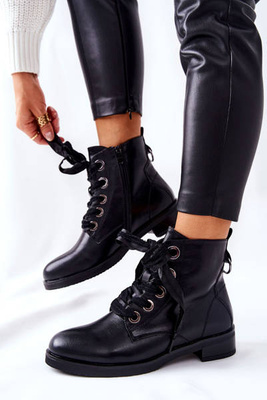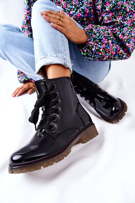 Kožené topánky na platforme Czarne Maciejka 05216-01