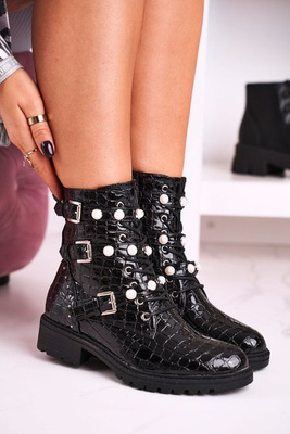 Čižmy izolované čierne výtlačky zvierací potlač Helenu
