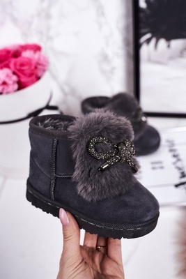 +2Detské izolované topánky Snehové topánky s kožušinou sivou láskou lásky