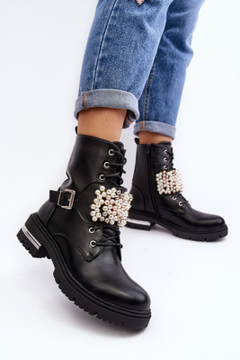 +1Dámske kožené topánky pracovníci na masívnom byte -zakotvení Zazoo 976a Black