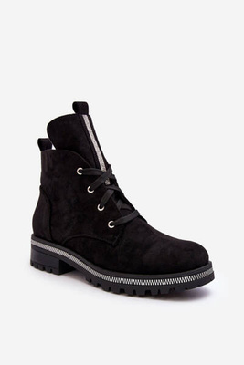 Dámske semišové topánky Black Albuna s plochými podpätkami