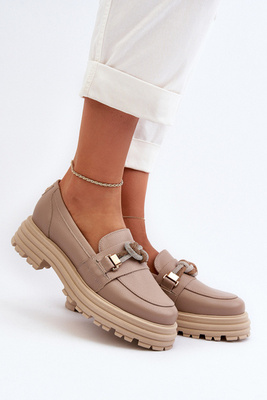 Dámske kožené mokasíny s ozdobou Laura Messi 2780 tmavobežové