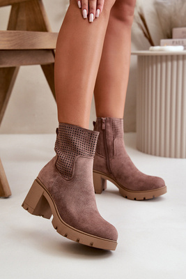 Dámske Topánky Na Opätku So Zipsom Eko Semišové Hnedé Rashmi