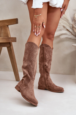 Dierkované Čižmy Na Ploškom Opätku Hnedé S.Barski HY66-150