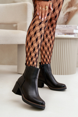 Zateplené dámske čižmy na podpätku eko koža čierne Irittes