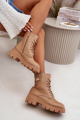 Dámske pracovné čižmy na zips šnurované z eko kože béžové Naolani