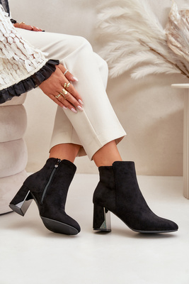 Zateplené Kotníkové Topánky Na Blokovom Opätku S Zrkadlovým Prvkom Čierne Silvare
