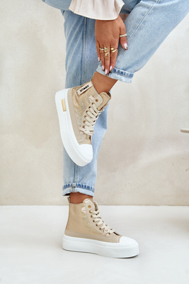 Dámske Vysoké Tenisky Na Platforme Béžovo-Zlaté Averira