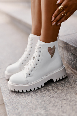 Dámske Čižmy Na Zips S Dekoratívnym Srdcom Biele Obeena