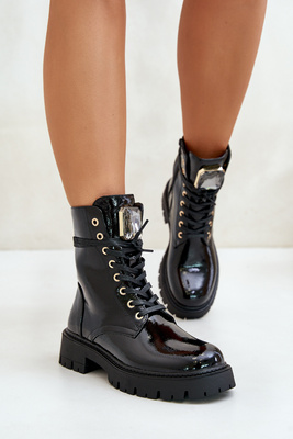 Lakované Pracovné Topánky Izolované S Ozdobou Čierne Depisa