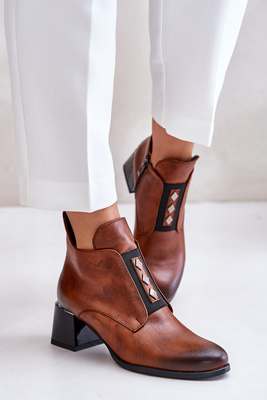 Zazoo 60504 Kožené Čižmy Na Bloku Zateplené Hnedé