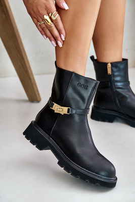 Kožené Dámske Čižmy S Pásom Zateplené GOE OO2N4150 Čierne