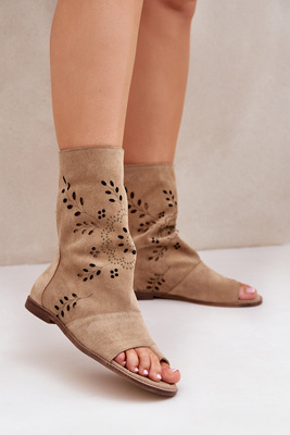 Zazoo 3437 Dámske Semišové Sandále S Zipsom Béžové