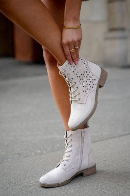 Čižmy S Perforovaným Vzorom Na Zips Svetlo Béžové Serfina