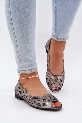 Perforované baleríny s odhalenými prstami strieborné Calgis